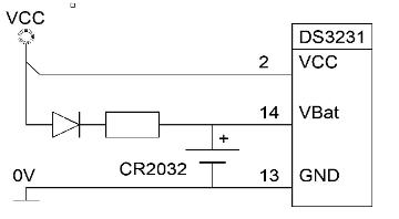 You will see from the charging circuit, that if the DS3231 is powered by a 5V supply a charging current will flow